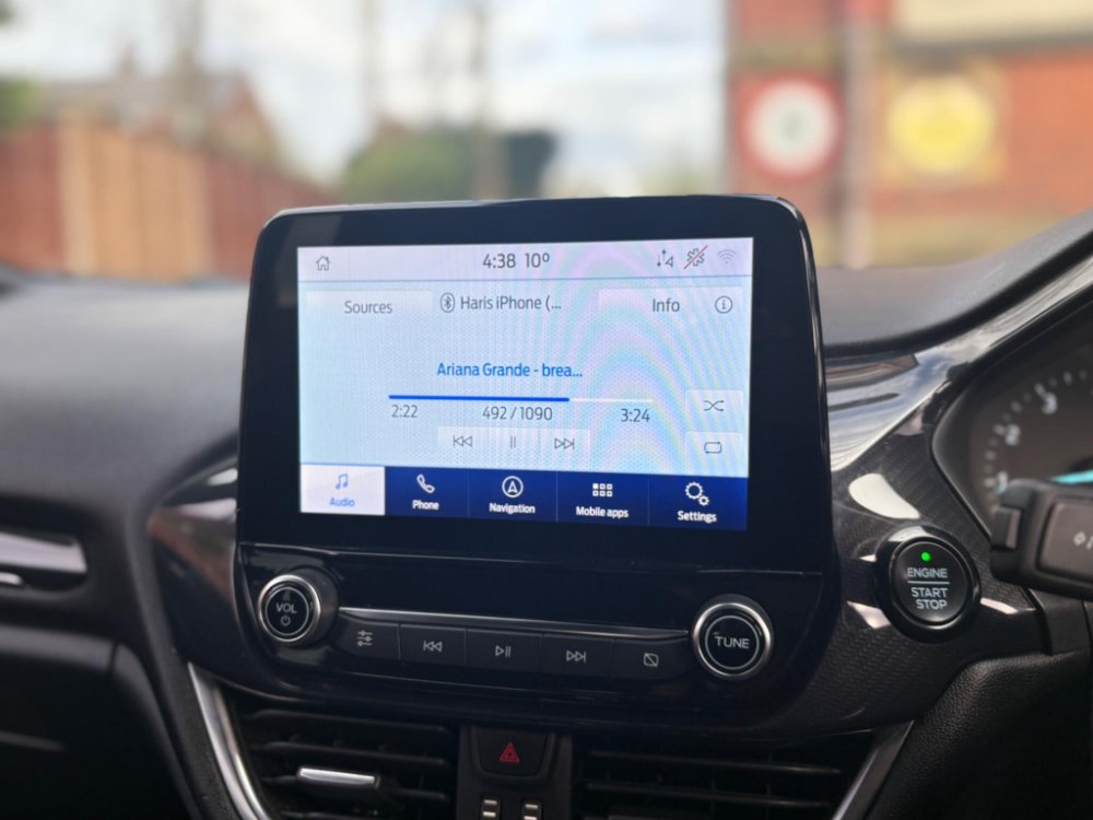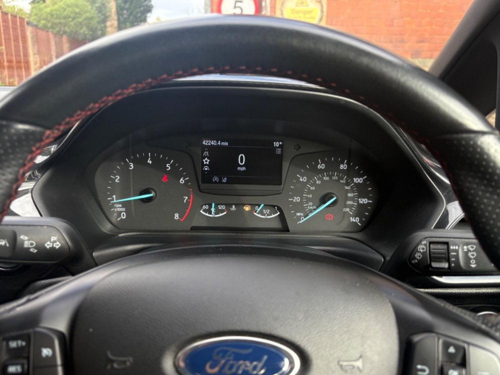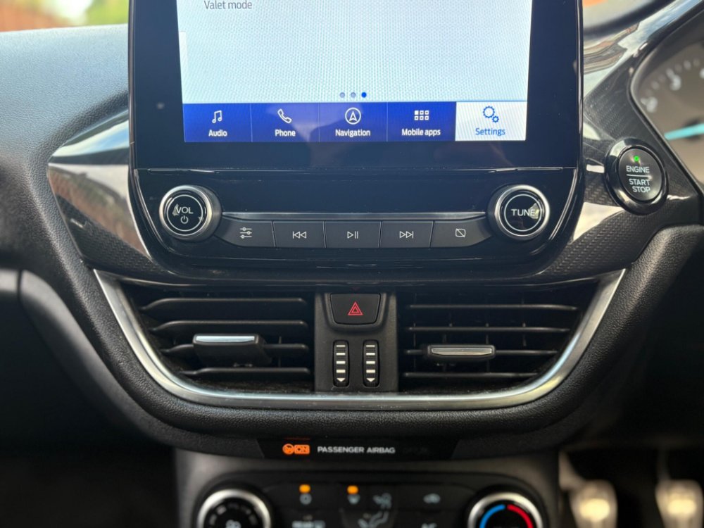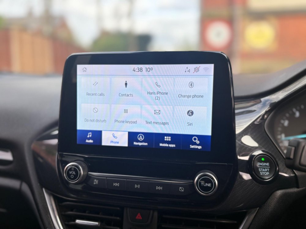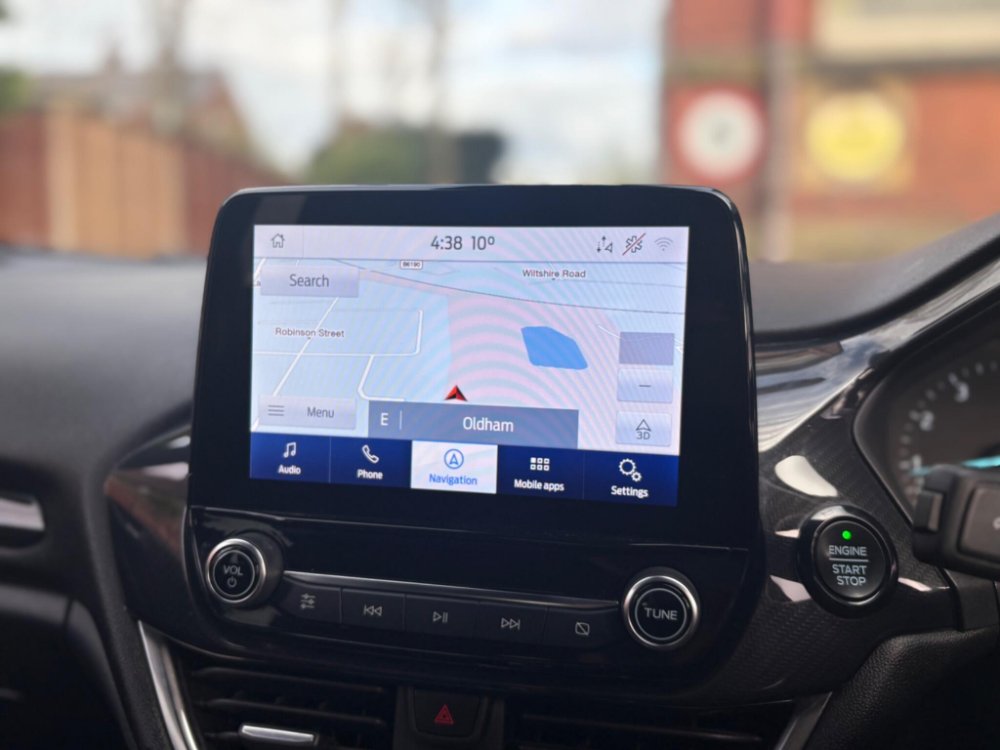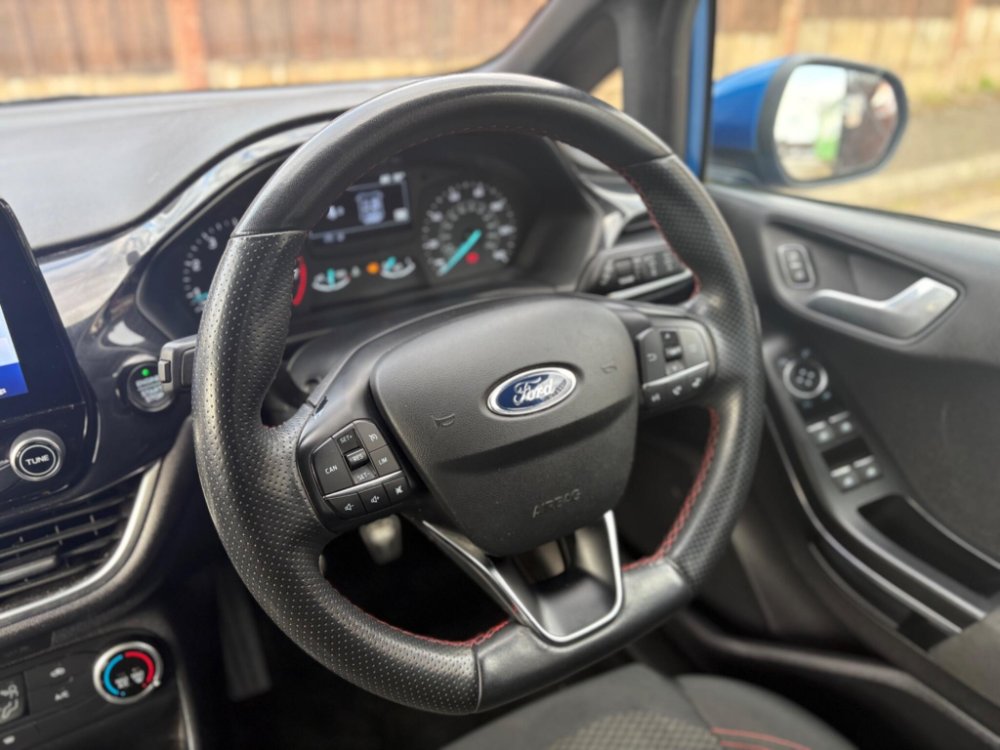 Finished in the stunning Desert Island Blue, this Ford Fiesta ST-Line stands out with its dynamic styling, body-coloured sports bumpers, sleek roofline and 17" 7-spoke alloy wheels. LED projector headlights, LED daytime running lights, cornering lamps and front fog lamps ensure a sharp, modern look, while the heated windscreen, automatic headlights, rain-sensing wipers and tinted glass provide excellent all-weather visibility.