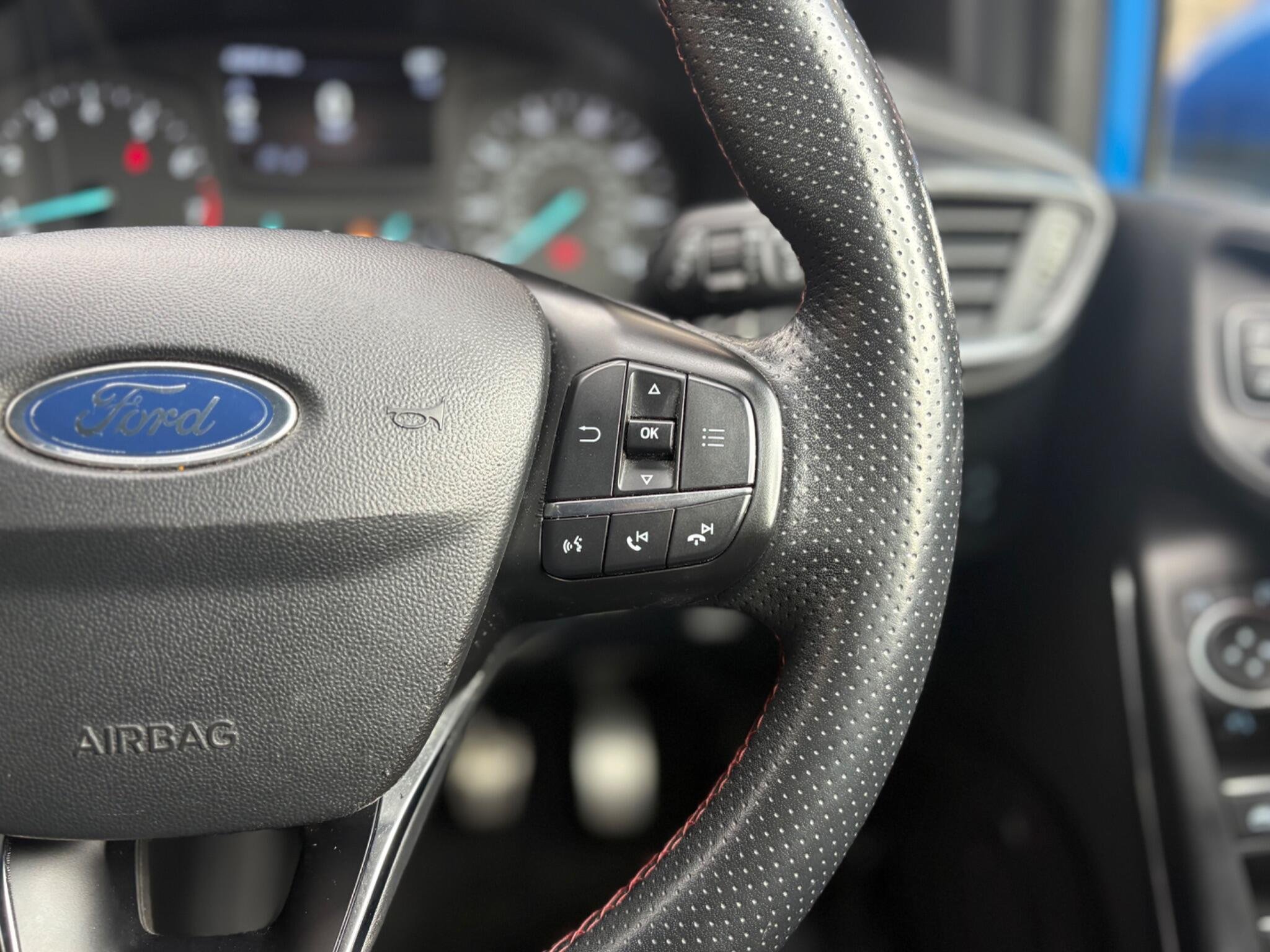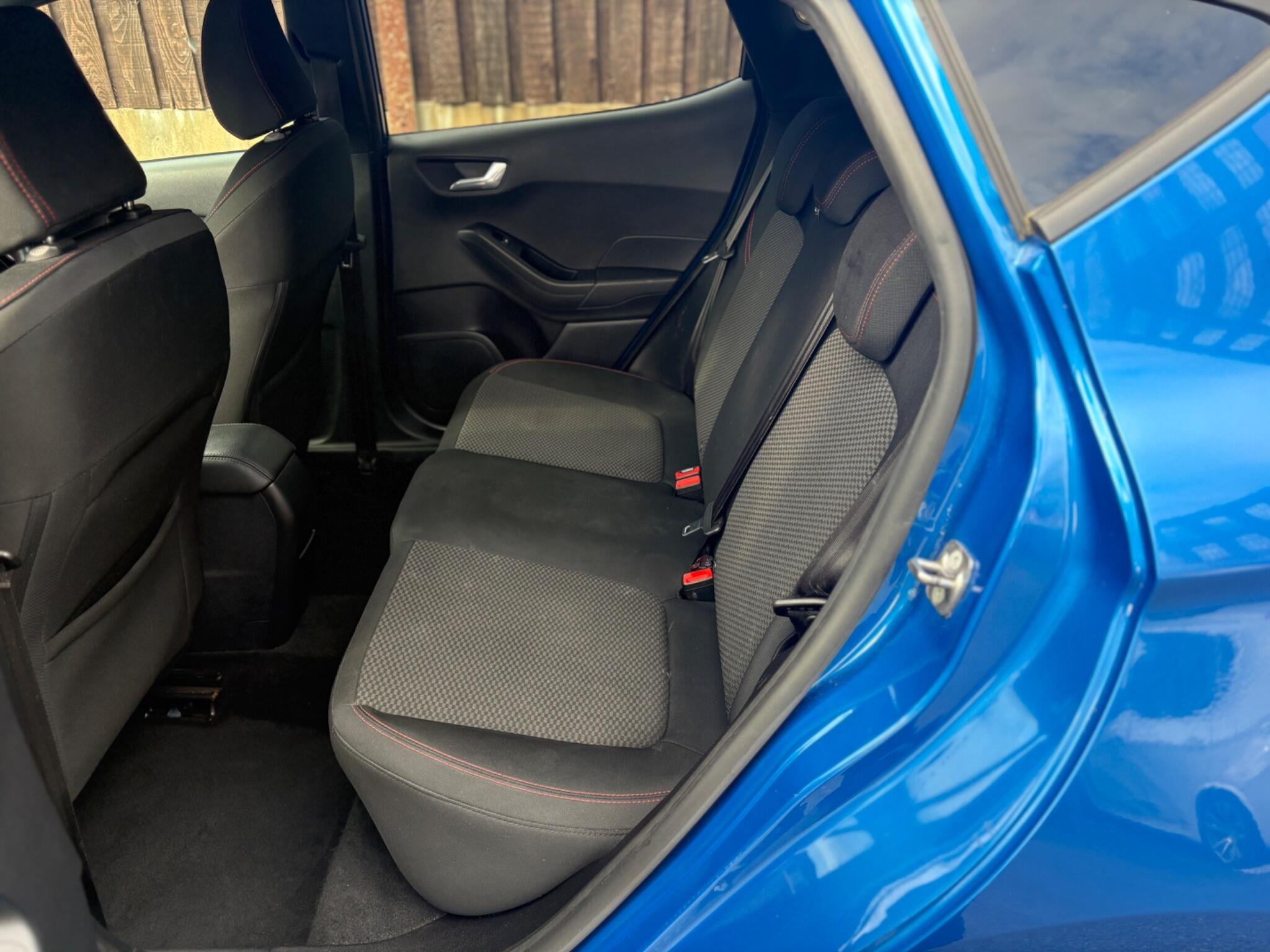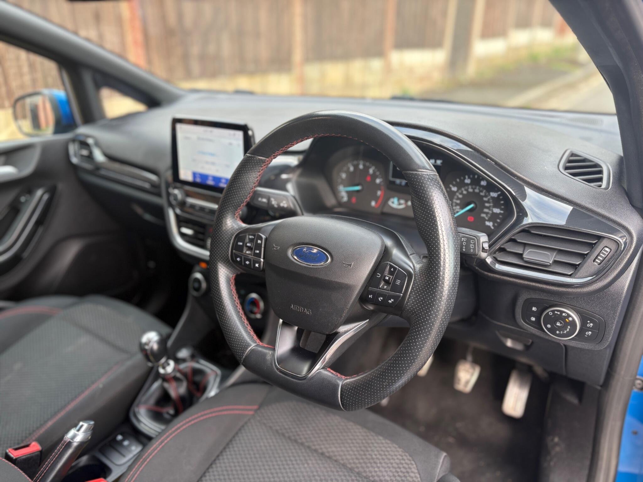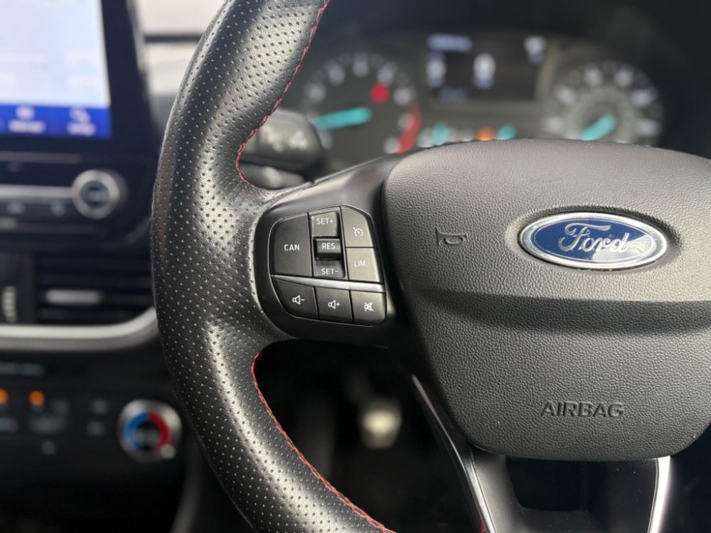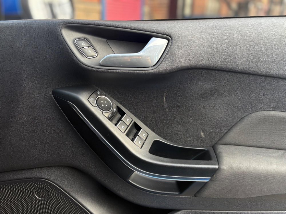 Finished in the stunning Desert Island Blue, this Ford Fiesta ST-Line stands out with its dynamic styling, body-coloured sports bumpers, sleek roofline and 17" 7-spoke alloy wheels. LED projector headlights, LED daytime running lights, cornering lamps and front fog lamps ensure a sharp, modern look, while the heated windscreen, automatic headlights, rain-sensing wipers and tinted glass provide excellent all-weather visibility.