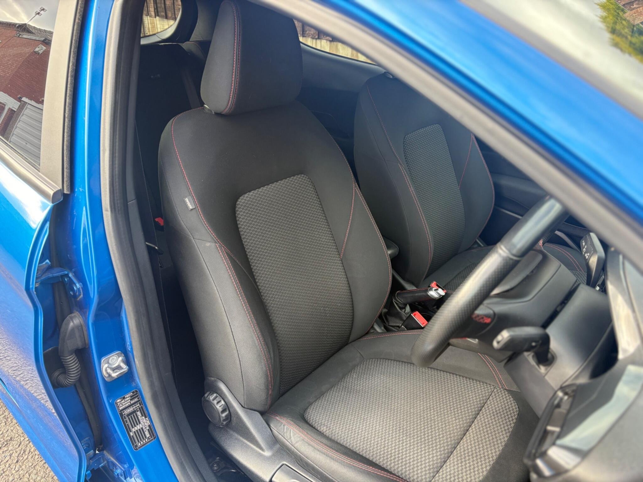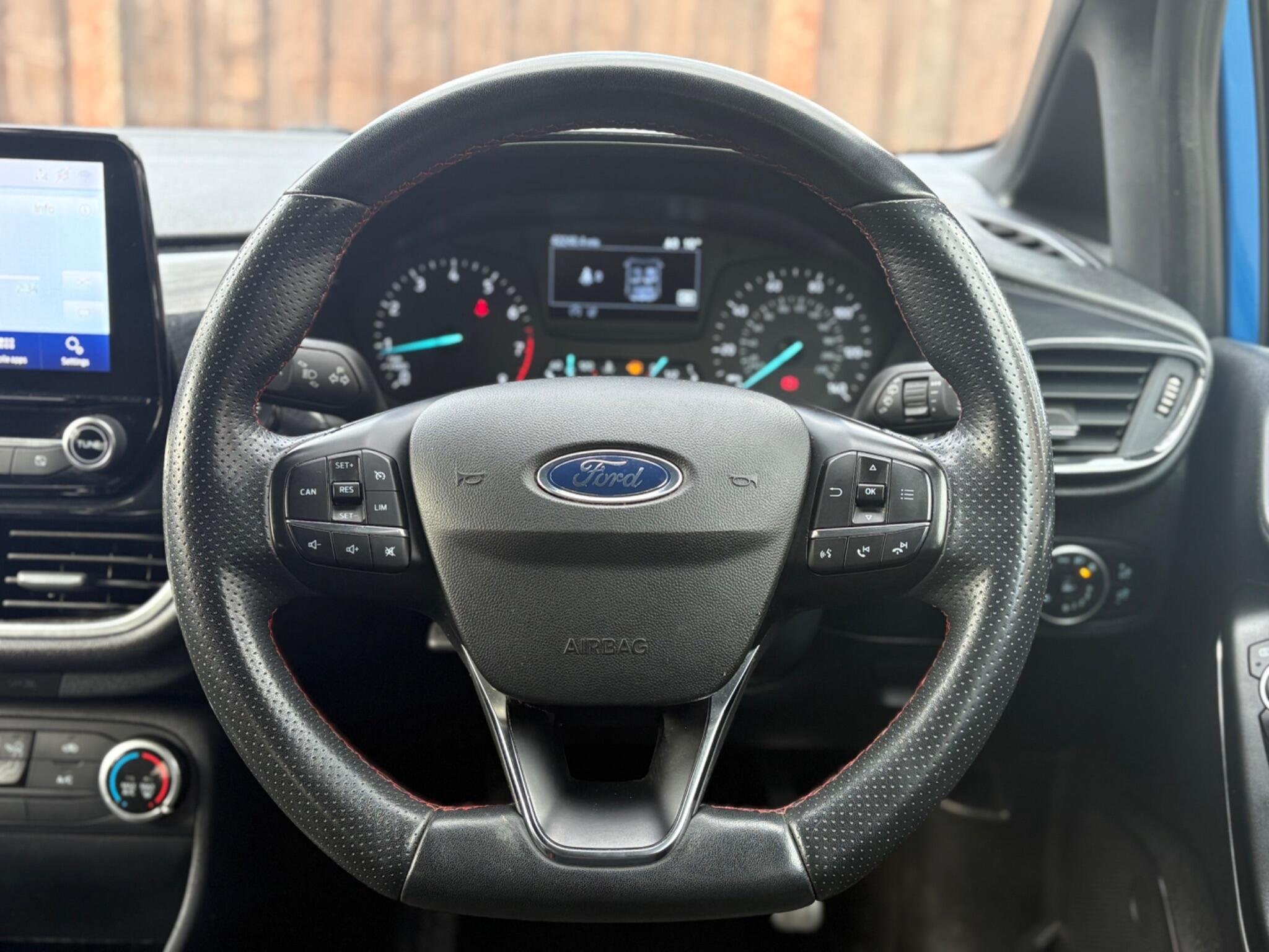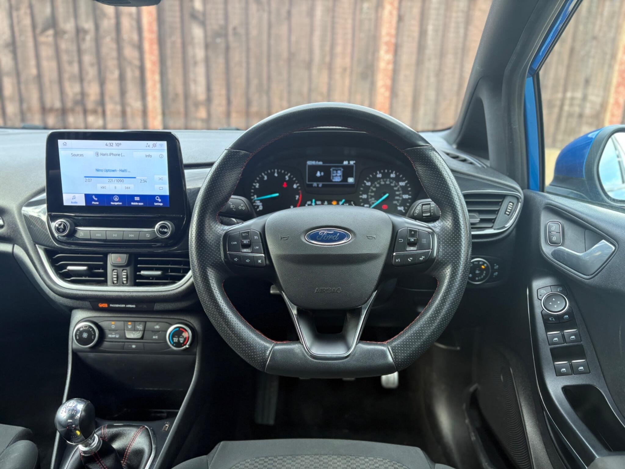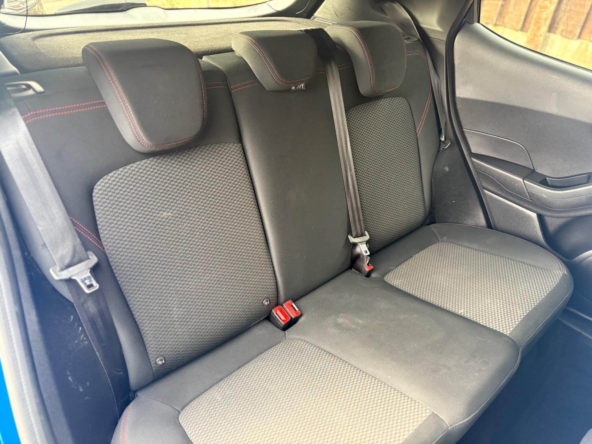 Finished in the stunning Desert Island Blue, this Ford Fiesta ST-Line stands out with its dynamic styling, body-coloured sports bumpers, sleek roofline and 17" 7-spoke alloy wheels. LED projector headlights, LED daytime running lights, cornering lamps and front fog lamps ensure a sharp, modern look, while the heated windscreen, automatic headlights, rain-sensing wipers and tinted glass provide excellent all-weather visibility.