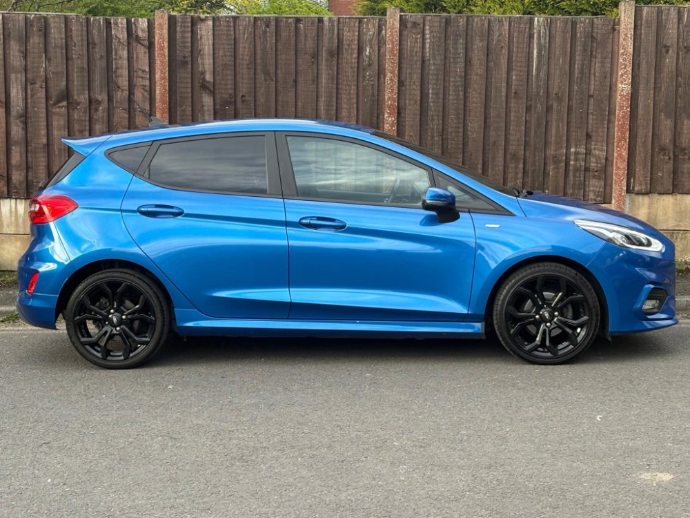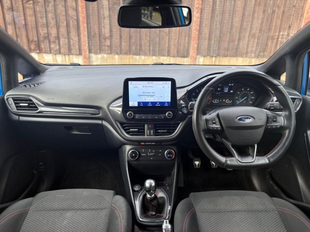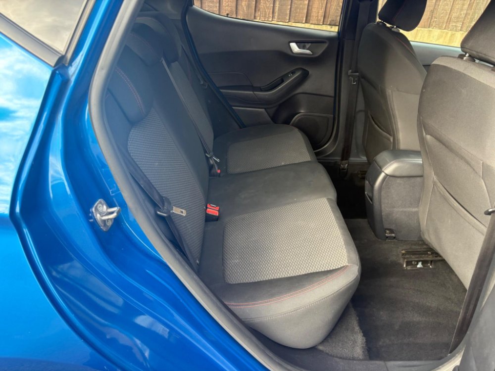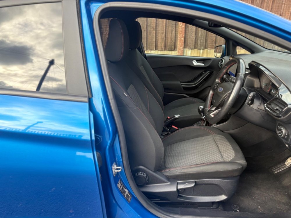 Powered by a responsive petrol engine with Start/Stop, sports-tuned suspension and a smooth 6-speed gearbox, this ST-Line offers an enjoyable and confident drive. Finished with a chrome exhaust tip, body-colour grille and ST-Line badging, this Desert Island Blue Fiesta combines performance, style and premium specification throughout.