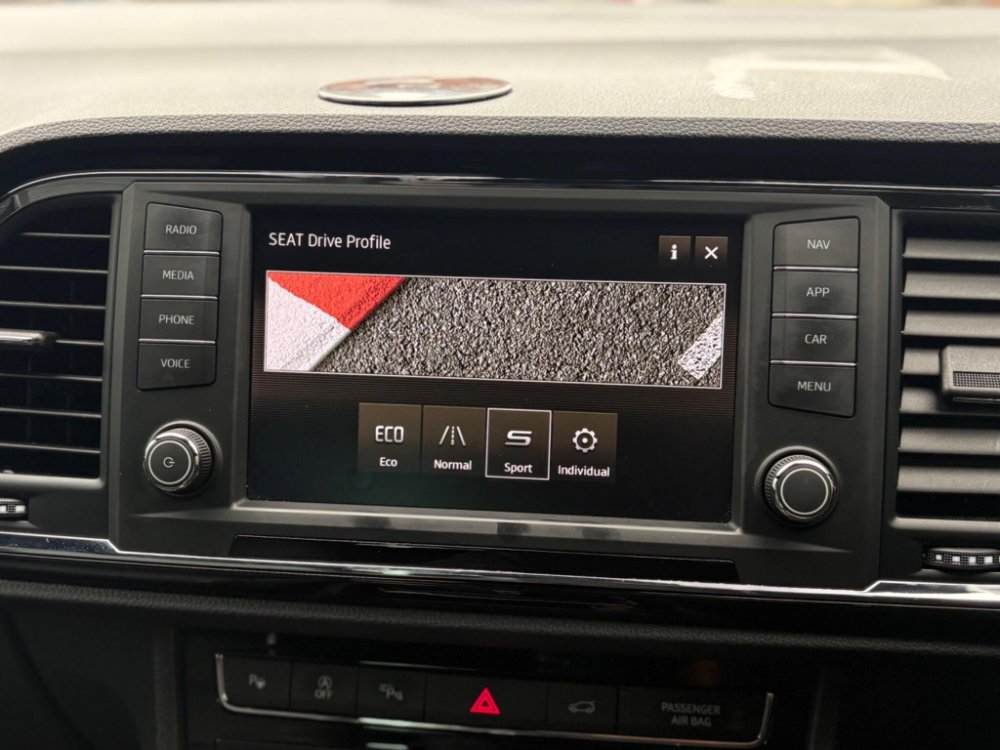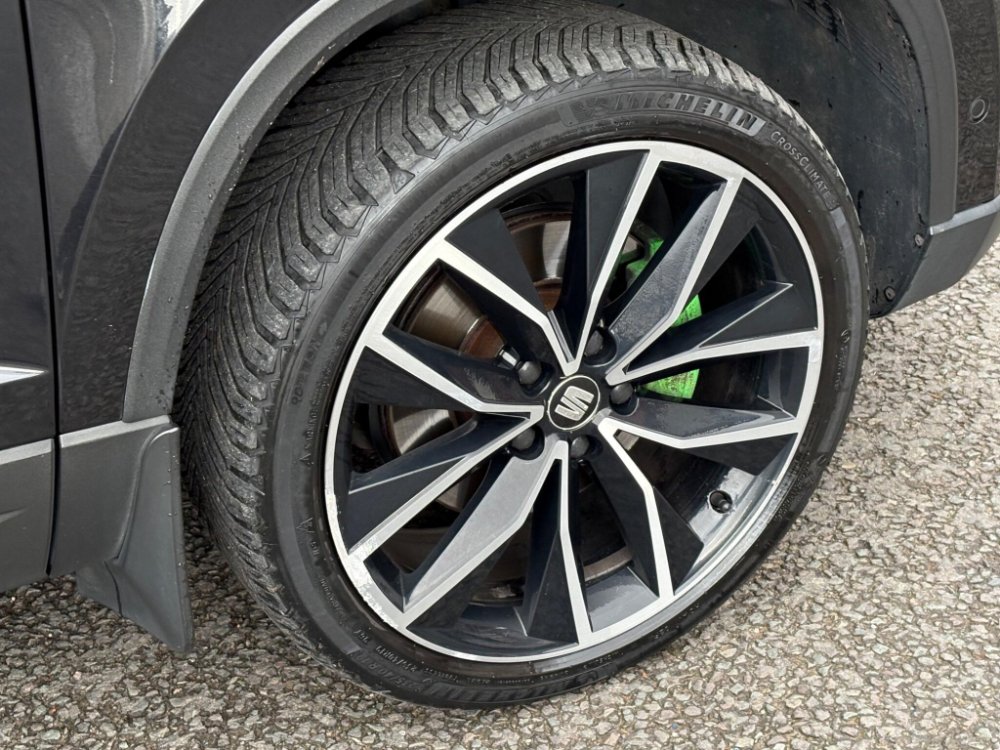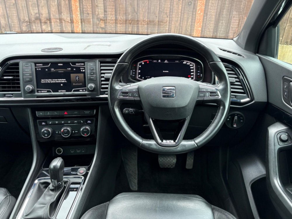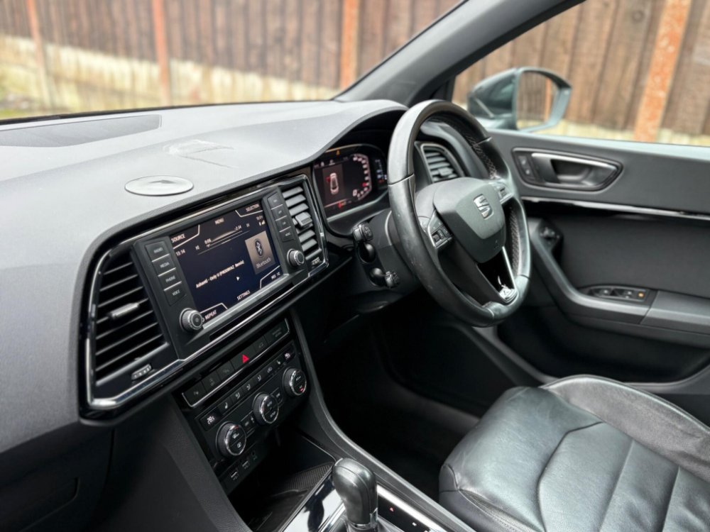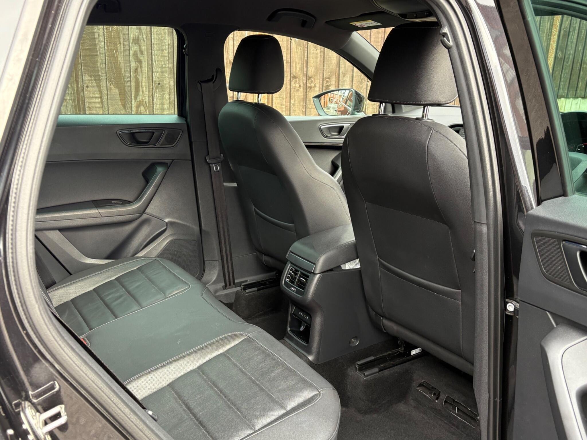 Inside, the cabin is finished in black leather upholstery with heated front seats and adjustable lumbar support for added comfort. Ambient interior lighting, a leather multifunction steering wheel with Tiptronic controls and SEAT’s Digital Cockpit display create a modern and driver-focused environment. Dual-zone climate control ensures year-round comfort, while the spacious interior, split-folding rear seats and generous boot capacity make it perfectly suited to family life or business use.